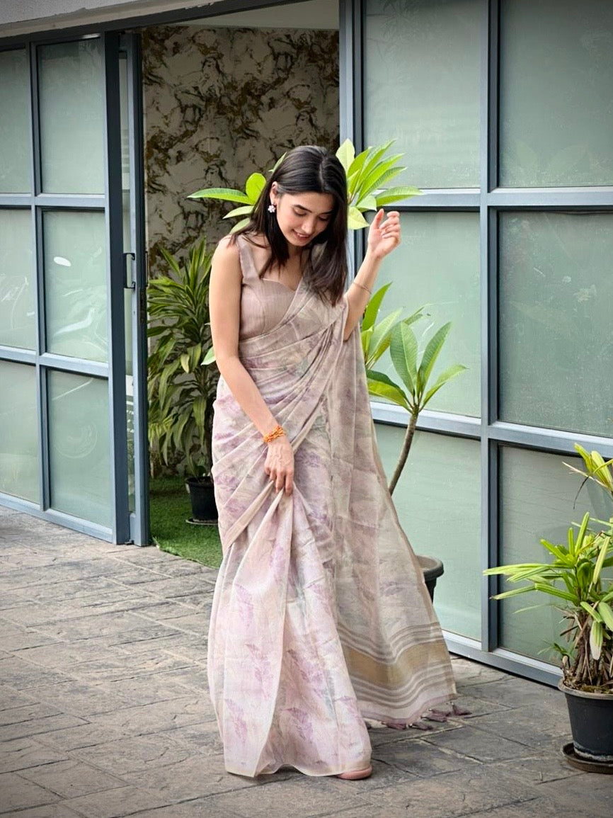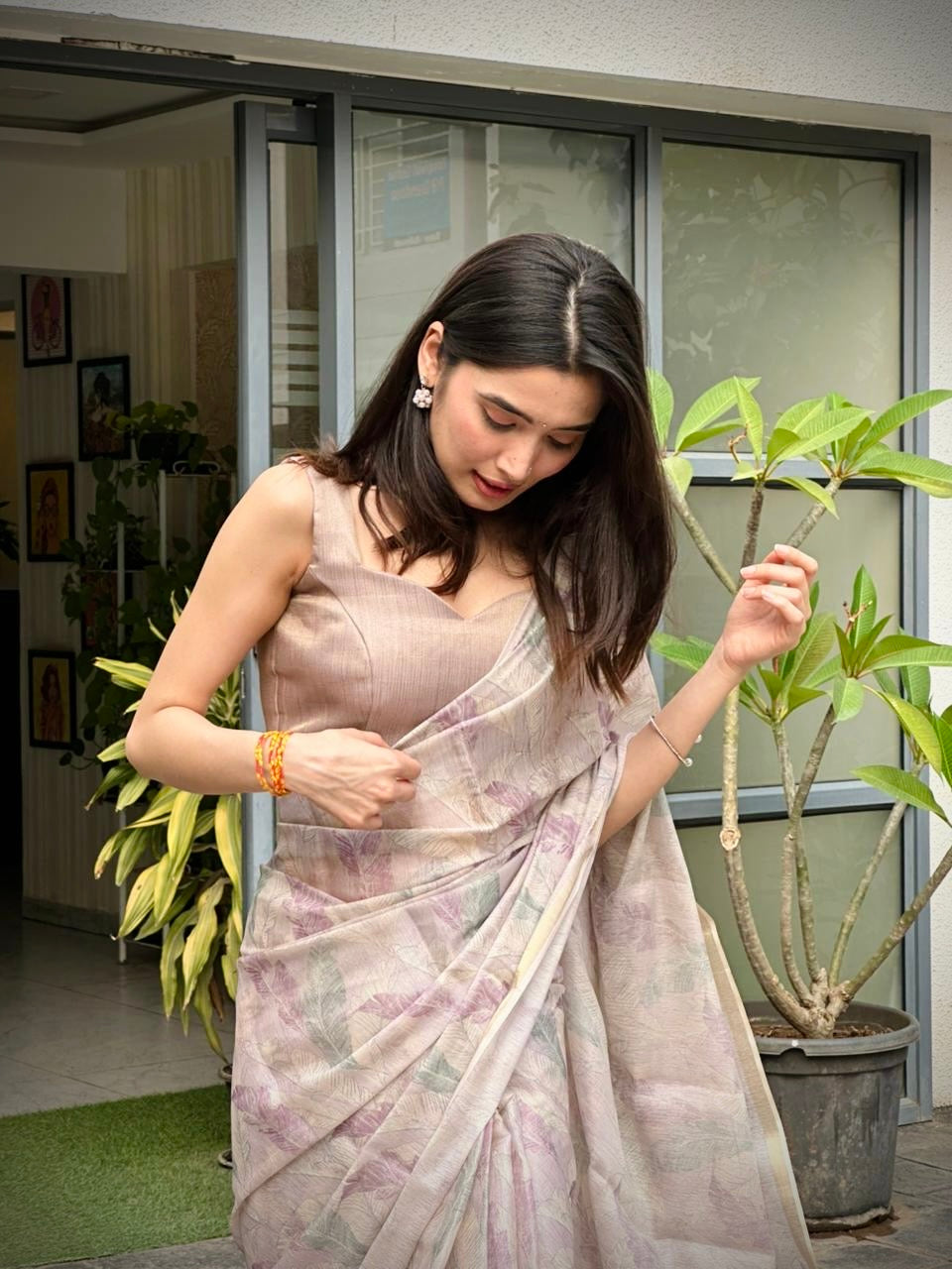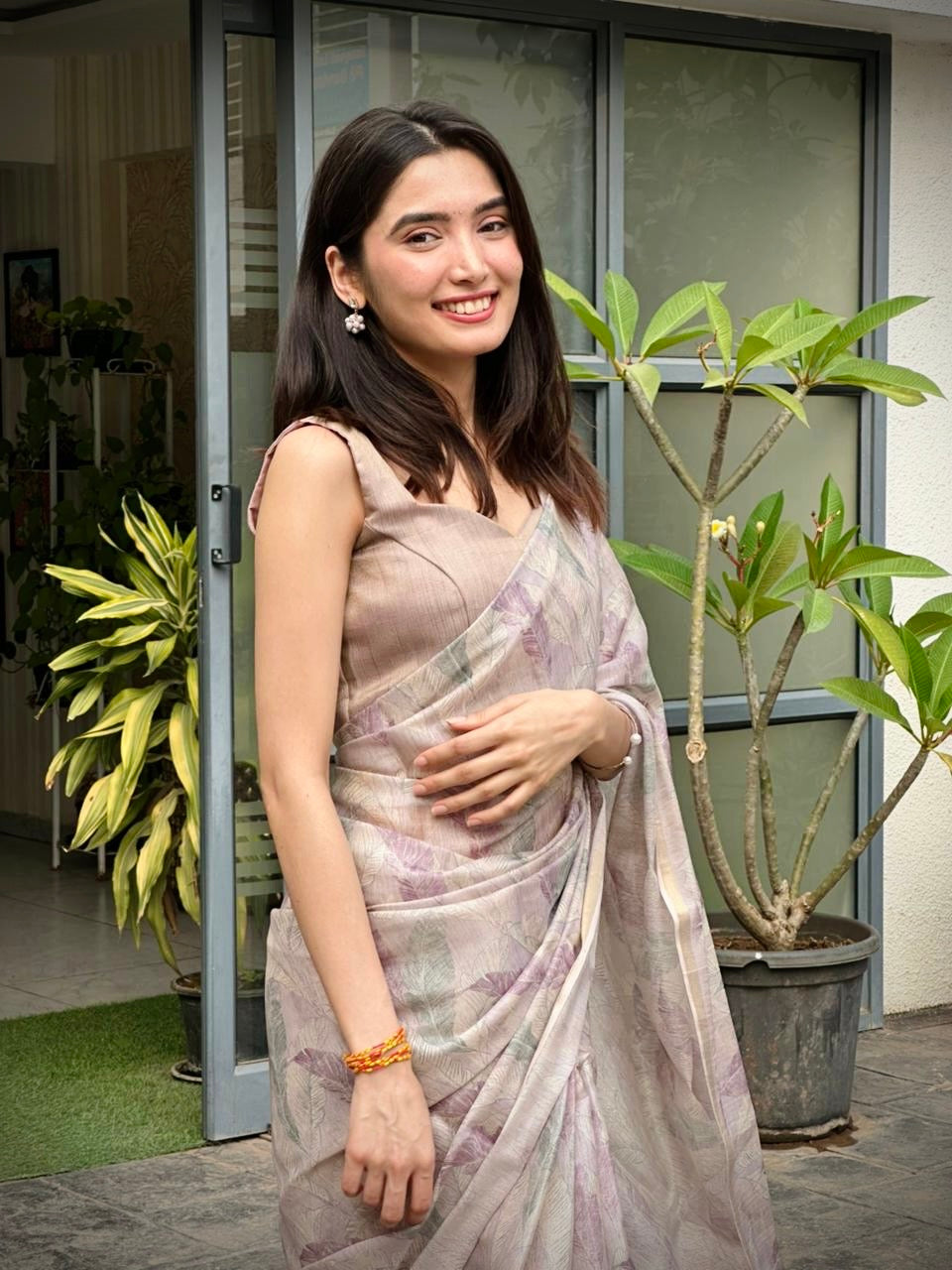 Lilac Vineyard Floral Radiant Satin Saree CSB1
