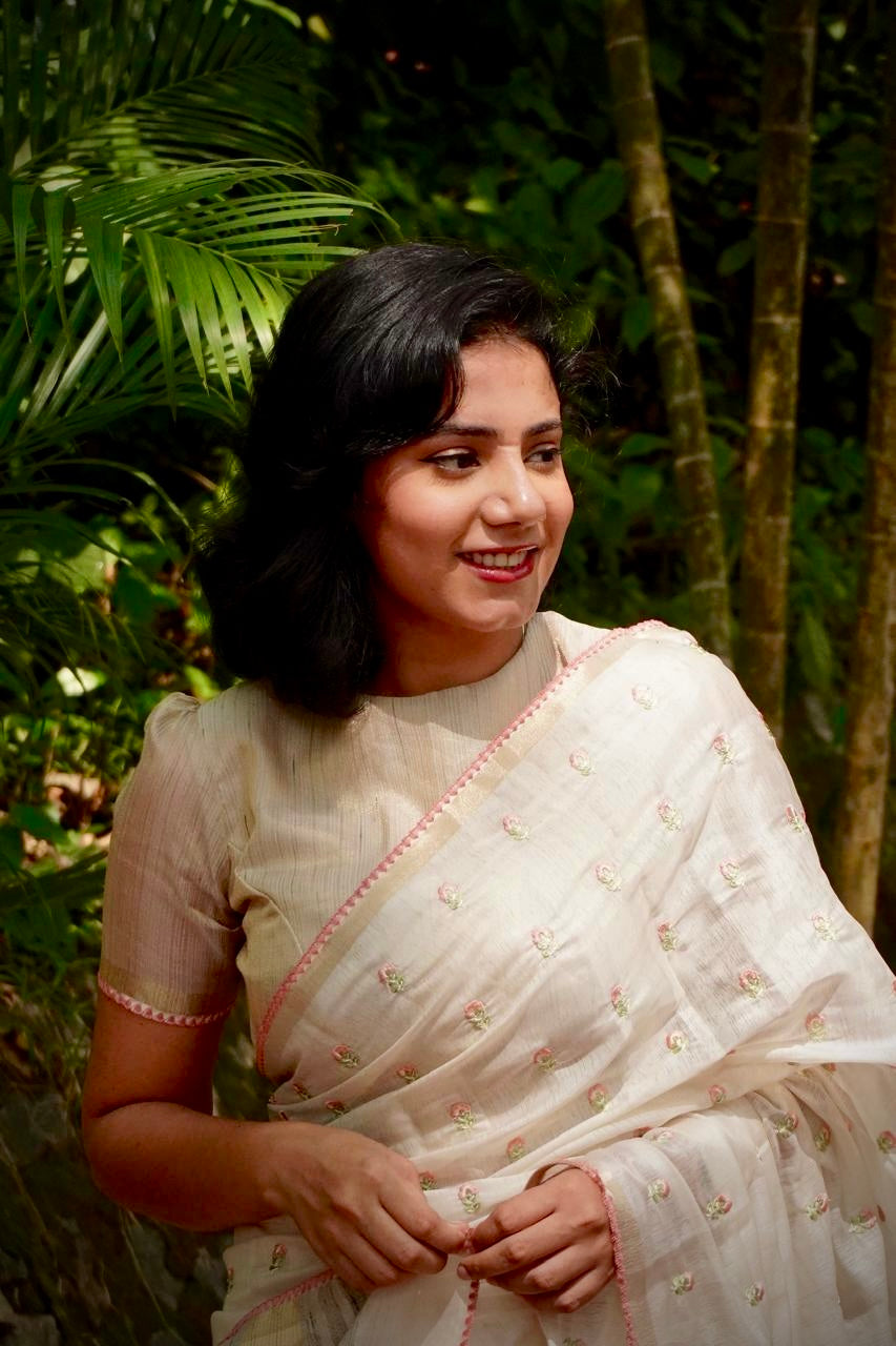 Creamy Soft Satin Saree with Embroidered Butti CSE