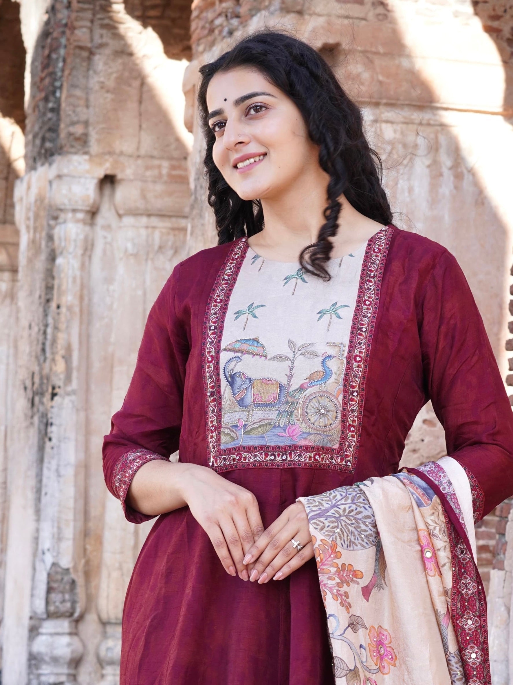 Dupatta – Soft silk with ethnic print and rich hand work on it.