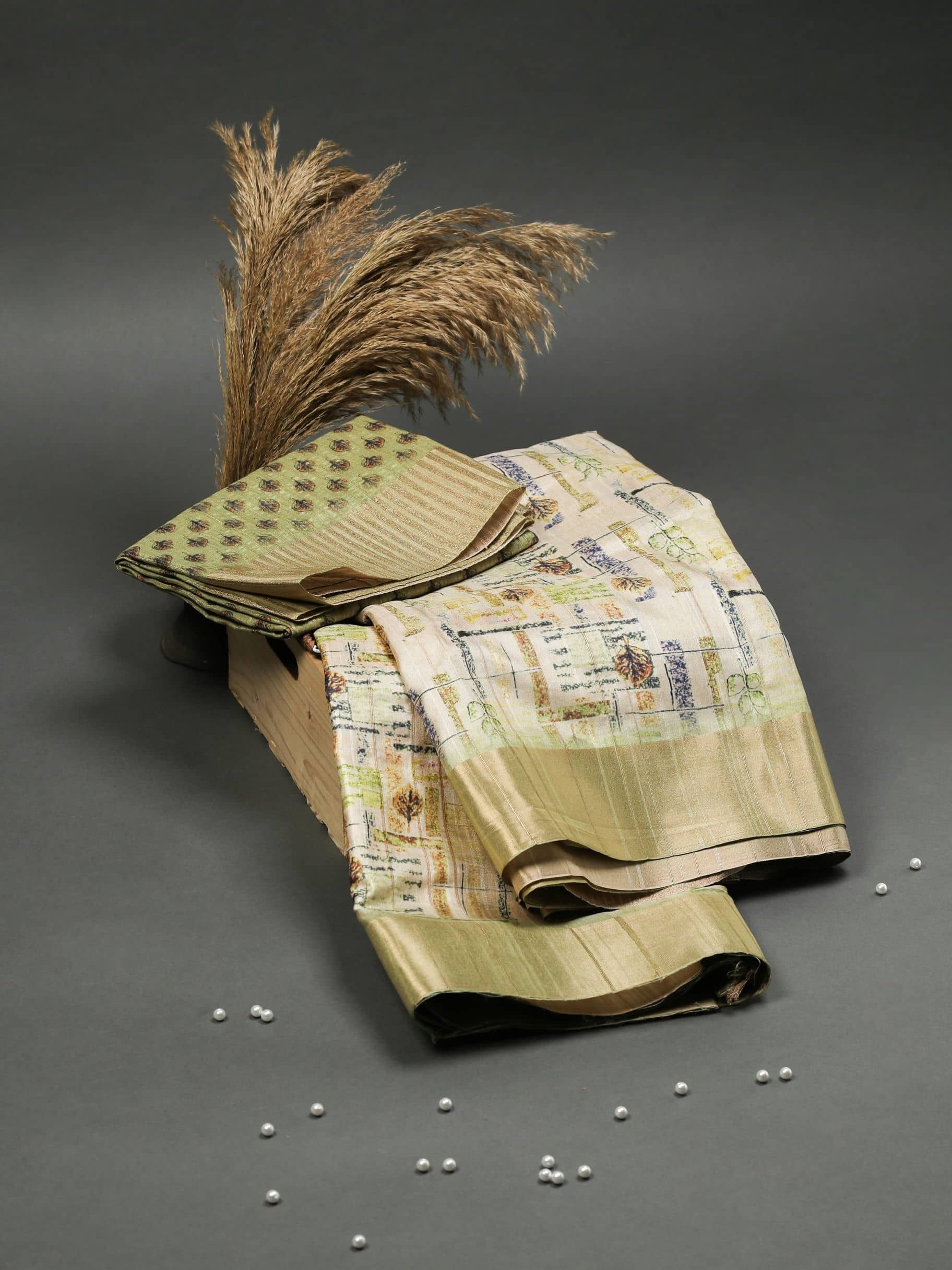 Lemon in Green Chapa Handloom Tussar Saree C3