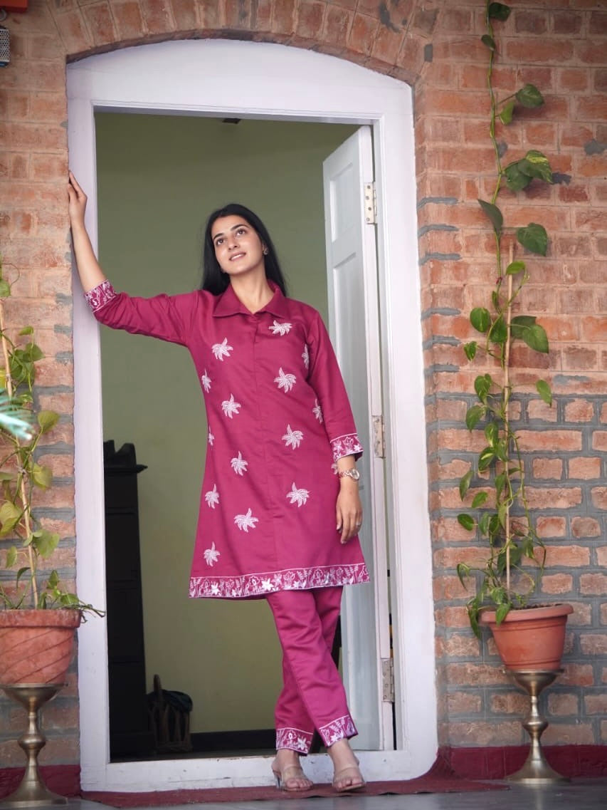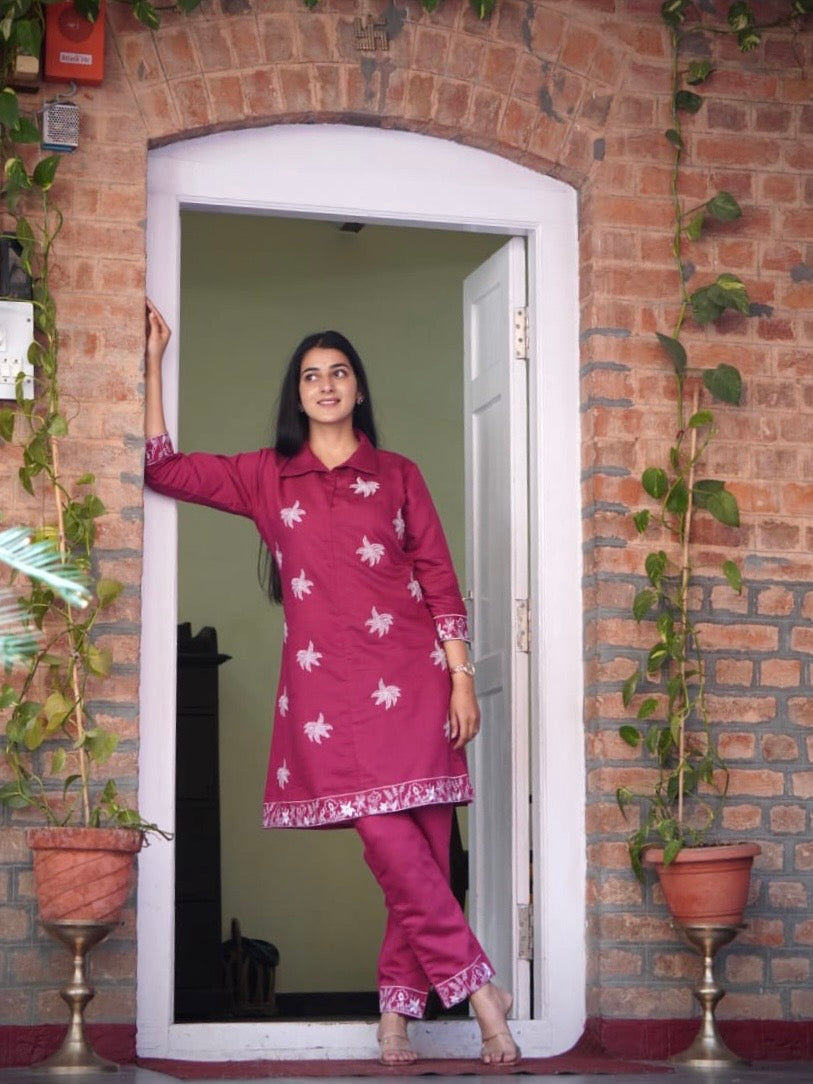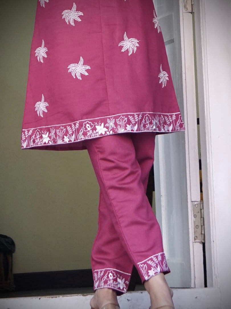 Step into effortless elegance with our Pink Haze Cotton Co-Ord Set, designed for the modern woman who values both style and comfort. Crafted from premium cotton-silk suit fabric, this two-piece ensemble features a chic short kurti and tailored pants, offering a refined yet relaxed silhouette. The intricate white thread embroidery enhances the design, adding a delicate touch of sophistication. Perfect for casual outings, office wear, or festive gatherings, this cotton silk kurti set is a must-have for those who appreciate timeless fashion.